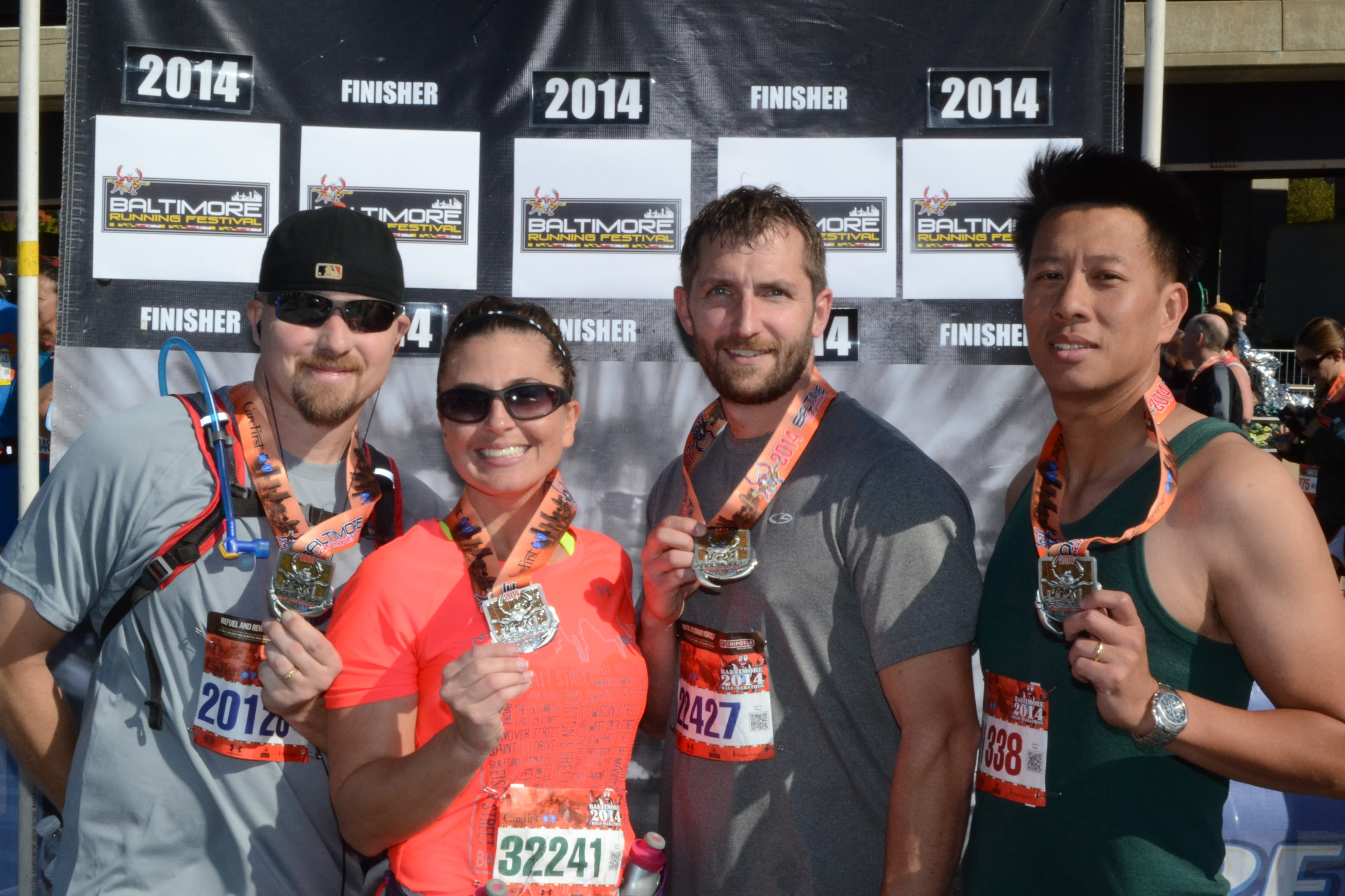POST RACE – I grabbed some water, got my medal and then went to look for Steven and Sam. While standing in the crowd, Ky spotted me! I found Steven and Sam and we all headed over to get our photos taken. Crystal finished shortly afterwards and we met up with her, and had more pictures taken!